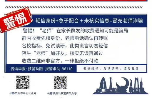 【吉林辟谣在线】警惕!骗子混进家长群,冒充老师来收费